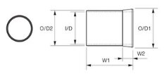 Size | I/D 1 mm | I/D2 mm | O/D1 mm | O/D2 mm | W mm |